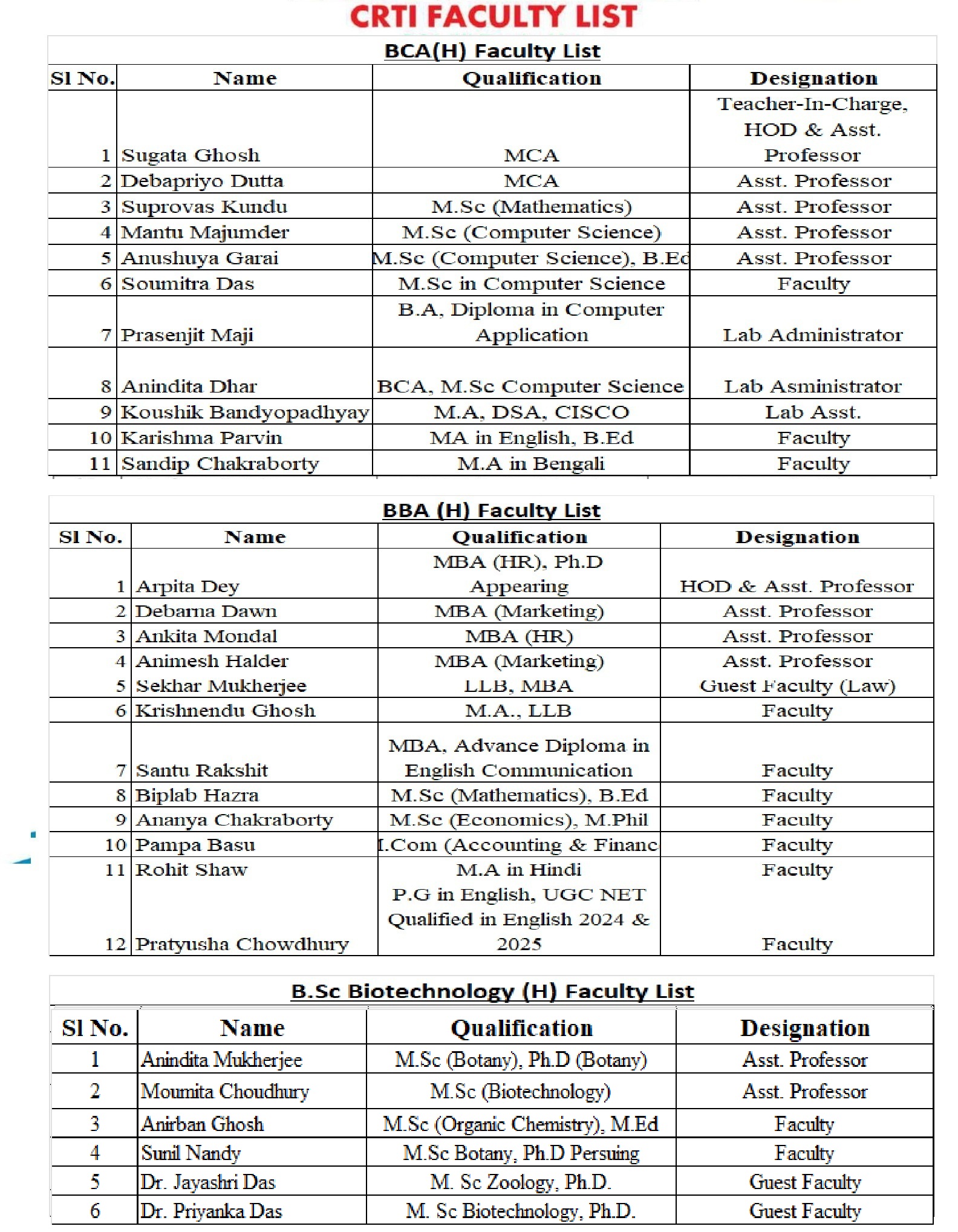 B.C.A., B.B.A., B.Sc. Bio Technology
